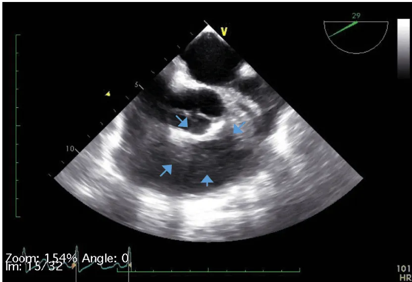 Figure 4a: QAV in diastole (arrows pointing to 4 cusps).