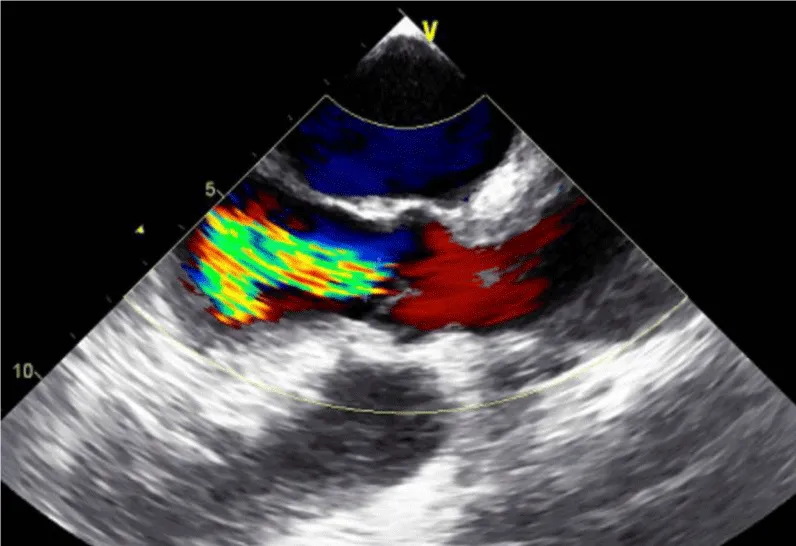 Figure 4c: Long Axis of the aortic valve demonstrating severe aortic Insufficiency.