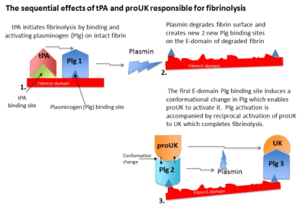 Therefore, fibrinolysis takes place sequentially by the activators, since tPA is required for the initiation of fibrinolysis and proUK/UK for its continuation and completion (Figure 1). Such a regimen was put to a clinical test.