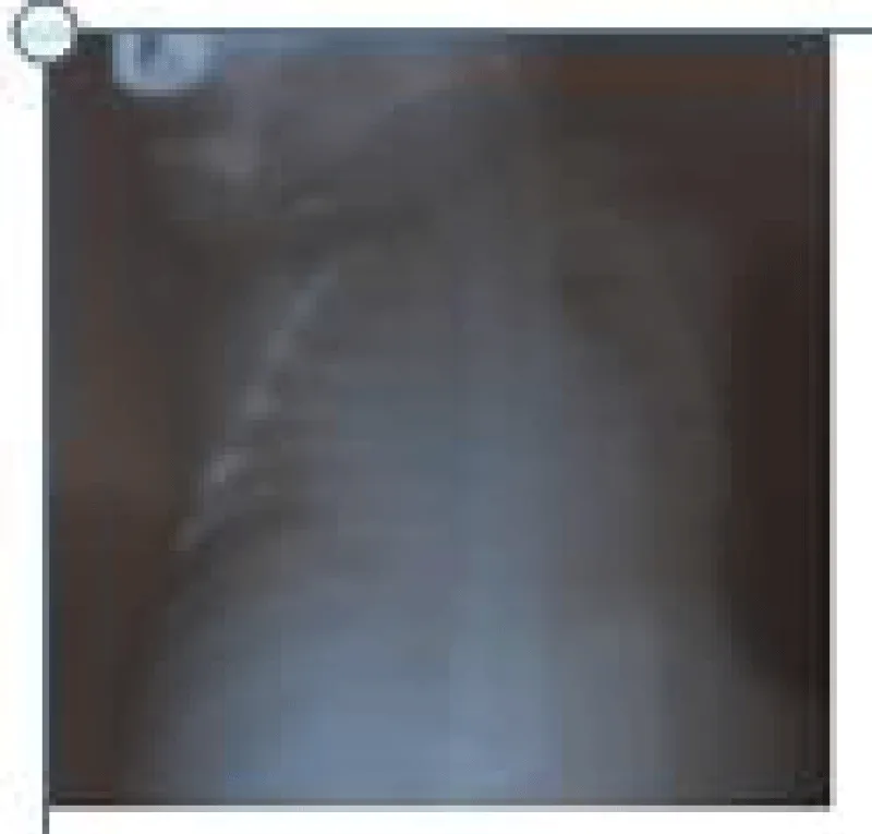 Figure 1: Chest X-Ray showing massive cardiomegaly (CTR = 68%).