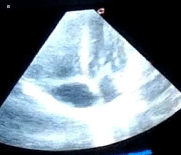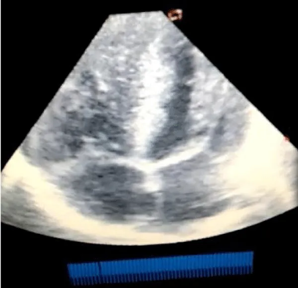 Figure 4: Repeat Echocardiography at 6 weeks of life (apical 4 chamber view) showing significant improvement in ventricular wall and septal enlargement.