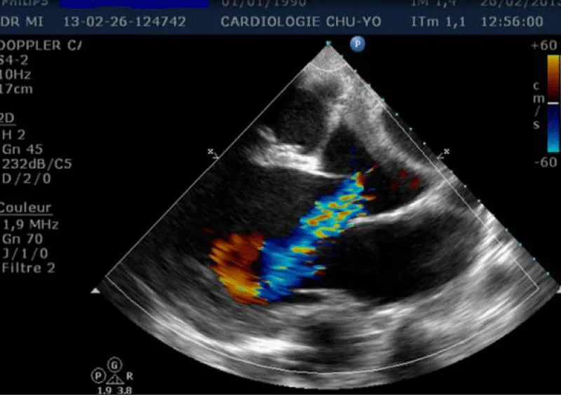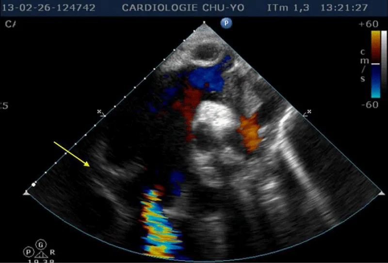 Mr. K W, 22 years old, was admitted on February 24th, 2013 to the cardiology department for sudden onset of orthopnea with severe chest and abdominal pains, and cough with bloody sputum. Past medical history reveals the progressive onset of dyspnea for about a month; thereafter the patient reported sudden severe chest and abdominal pains described as a tear radiating down and backward. A cough with hemoptysis was also reported. After the failure of ambulatory treatment and the onset of NYHA class IV dyspnea, the patient was referred to the cardiology department for better management.