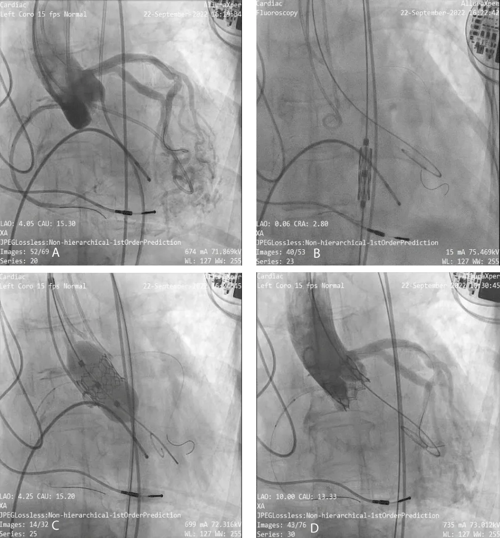 The MSCT scan showed Coronary Arteries (CA) with low heights (right CA: 7.4 and left CA: 8.7 mm) (Figure 1). The patient was considered suitable for transfemoral TAVR as per the Heart Team’s decision and a 20 mm BE Myval THV was selected in consideration of the low coronary heights. Written informed consent was obtained from the patient and the family.