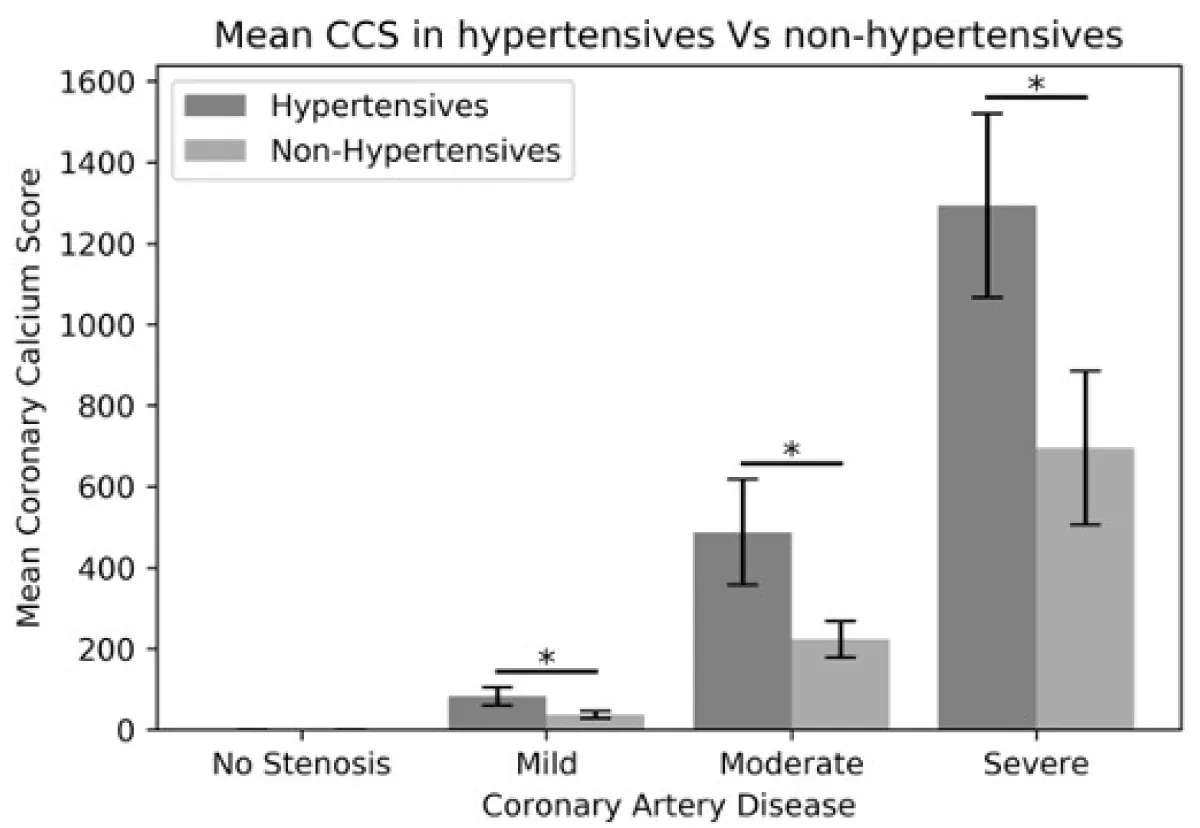 A high calcium score indicates an increased burden of atherosclerotic plaque in the coronary arteries. For hypertensive patients, this can be an essential tool for risk assessment. Since hypertension is a known risk factor for atherosclerosis and CAD, when combined with a high calcium score, it suggests a more significant risk of future cardiovascular events, such as heart attacks and strokes.
