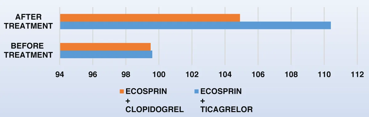 Figure 6: Comparision Of Ecosprin+Ticagrelor With Ecosprin+Clopidogrel