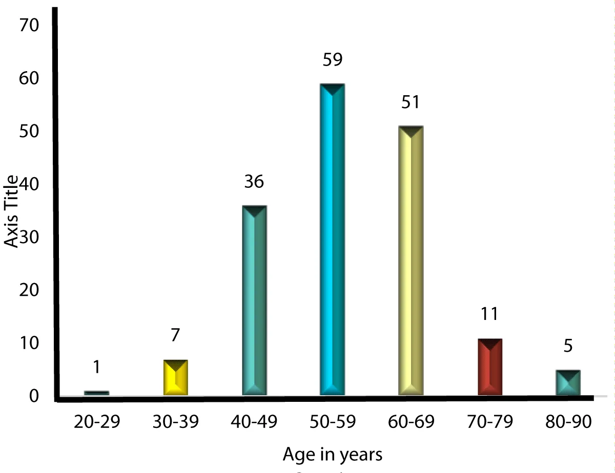 Table 1: The distribution based on age as shown in Table 1. The data reveals that the highest prevalence of ACS is observed in the 50-59 age group of 30%(n = 59). Followed by the 60-69 age group 30%(n = 51), and the 40-49 age group, with n = 36 (21.17%). 70-79 age group includes n = 11 (6.47%), 80-90 age group has n = 5 (2.90%), n = 7 (4.11%) in the 30-39 age group and only n = 1 (0.58%) in the 20-29 age group (Figure 1).